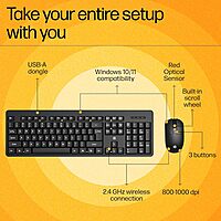 HP KM200 Wireless Keyboard & Mouse Combo, Ergonomic, 2.4GHz