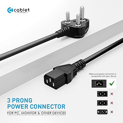 Cablet Power D15 3-Pin Desktop Power Cable, 1.5M, 700W Load Capacity, Type-O Plug